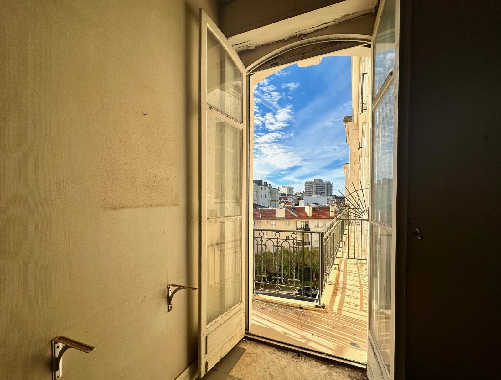 CLEMENCEAU - Dans l'une des bâtisses les plus prestigieuses de Biarritz, la Résidence d'Angleterre, studio de 31m² à rénover, situé au 3ème étage, avec ascenseur. Actuellement composé d'une pièce à vivre, ouvrant sur balcon, avec un espace cuisine, une salle d'eau et un WC indépendant, vous pourrez laisser libre cours à votre inspiration pour en faire un cocon Charme de l'ancien et belle hauteur sous plafond. Stationnement libre au sein de cet ensemble sécurisé. Concierge.