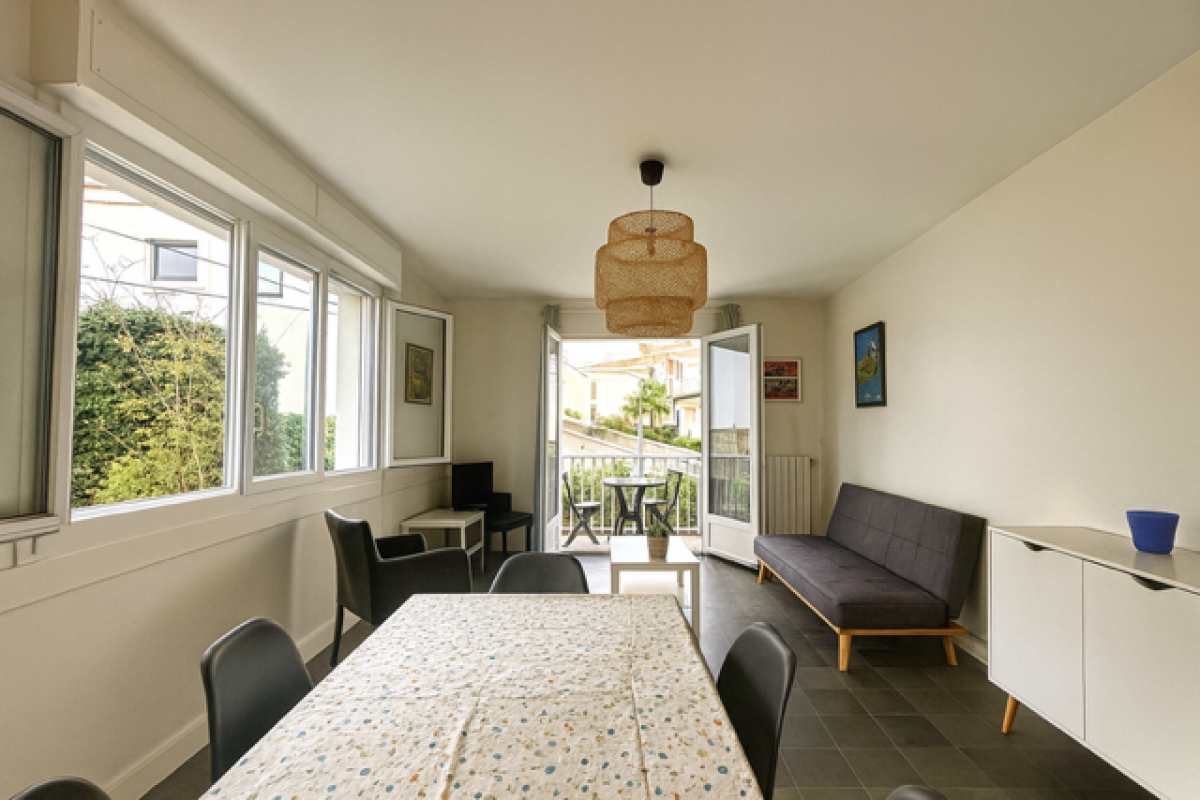 A 5min à pied de LA MAIRIE - Dans une résidence avec ascenseur, située au calme, bel appartement traversant de 60m² aux prestations soignées. Il se compose d'un agréable séjour ouvrant sur une terrasse à l'abri des regards. Cuisine équipée donnant sur ine loggia bénéficiant d'une vue dégagée sur l'océan et les toits de Biarritz. Deux chambres avec placards. Une cave et la facilité de stationnement en font un bien recherché à deux pas des commodités.